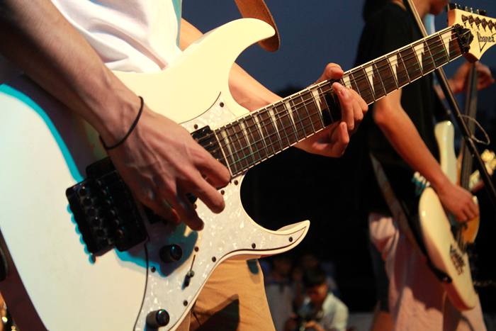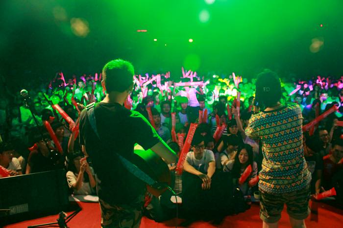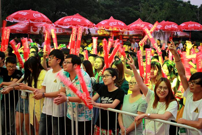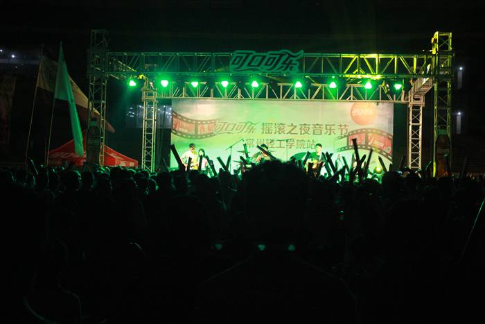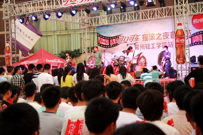 活动尚未开始,我院对口单招的新生们早早的在指定区域就坐。随着新起点乐队的闪亮登场,立刻激活了全场的音乐细胞,全场观众无不站立欢呼,一起摇摆。随后常州大学镇定剂乐队、江苏理工学院无氧乐队,常州机电学院齿轮乐队也依次登台演出,他们挥洒出摇滚音乐特有的力量感和爆发力,引得台下歌迷与观众尖叫不已。