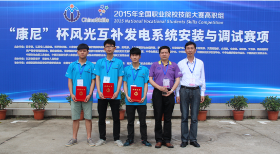 由教育部主办、教育部职业教育与成人教育司承办的“2015年全国职业院校技能大赛”于2015年5月至7月在江苏、天津等17个赛区举行,参与企业上百家,参赛选手过万人。我院电子系在“风光互补发电系统的安装与调试”、“现代电气控制系统安装与调试”“电梯系统安装与调试”项目中再创佳绩,获得全国一等奖2项,二等奖1项。其中“风光互补系统的安装与调试”项目获得一等奖第1名。这是电子系在推进“构建竞赛文化,促进高职学生实践创新能力培养”专业文化建设过程中取得的又一硕果。