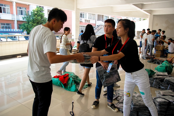 从迎新筹备到迎新“实战”,学院后勤管理处全员在岗,完成了学生公寓、校园环境、学生餐厅、运输服务、水电设施等一系列后勤服务保障工作。迎新如火如荼、有条不紊,处处能见后勤人忙碌的身影:戴着斗笠,穿着防晒袖套的保洁员分散在各个角落,及时清运垃圾,为师生、家长维持整洁的校园风貌;着统一制服的保卫人员在园区每个执勤点维持秩序,指挥交通;水电维修工作人员们24小时值班,定点待命;食堂员工为新生和家长精心烹制美味佳肴 -----