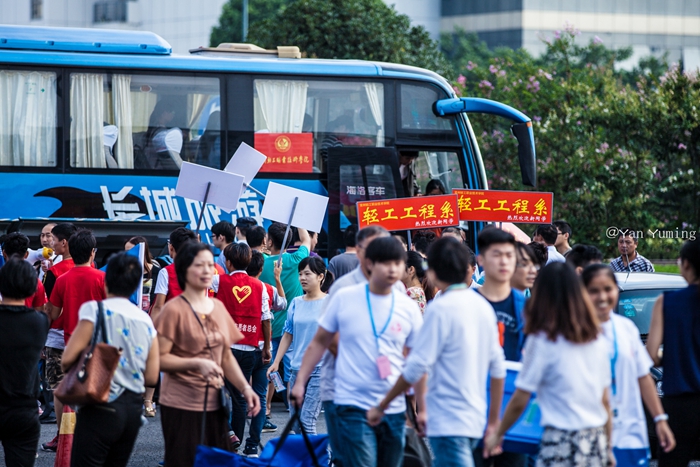 每年新生报到时,志愿者就成为了校园中最为靓丽的风景线,当然今年也不例外。学院新生报到注册点分布于图文楼北广场,8日下午,各种帐篷物资就已经在校内外各个迎新点准备就绪。9日凌晨,迎新工作紧锣密鼓地启动:在常州火车站、汽车站,志愿者们引导着新生处理好行李,登上学校的客车,在车上讲解学校概况、常州的历史人文。在校内,学院北门和南门均有各系引导组的志愿者举着牌子耐心等候,他们为学弟学妹指引方向和搬运行李,帮助他们熟悉报到流程,熟悉校园,领取各类用品,将微笑传递到每个角落。