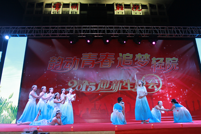 飒飒金风报秋实,莘莘学子展英姿;欢歌笑语聚一堂,载歌载舞迎新生。9月23日晚,以“韵动青春 追梦轻院”为主题的我院2015年迎新生文艺晚会在图文楼北广场隆重举行。出席活动的有院党委书记杨兴华、副书记张涛、副院长毛伯民,以及系部相关领导、相关职能部门负责人,新生军训教官也同2015级新生共同观看了文艺演出。