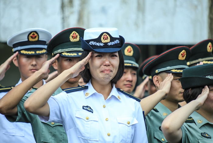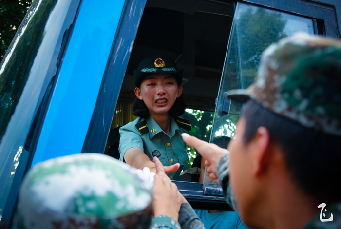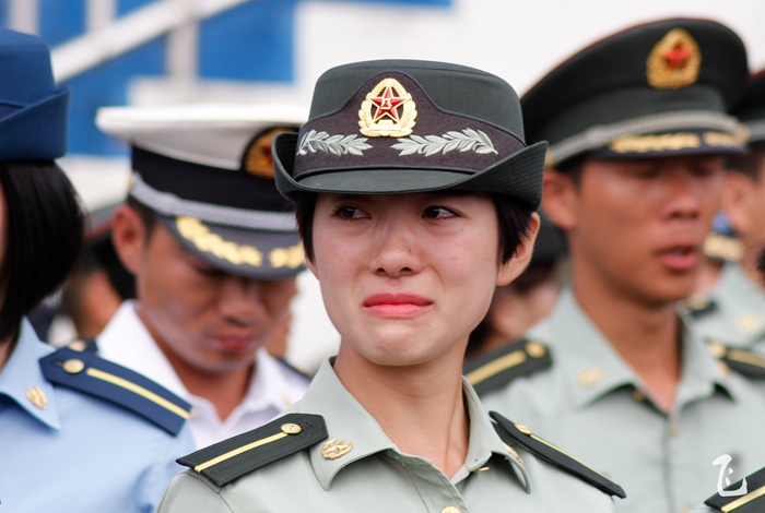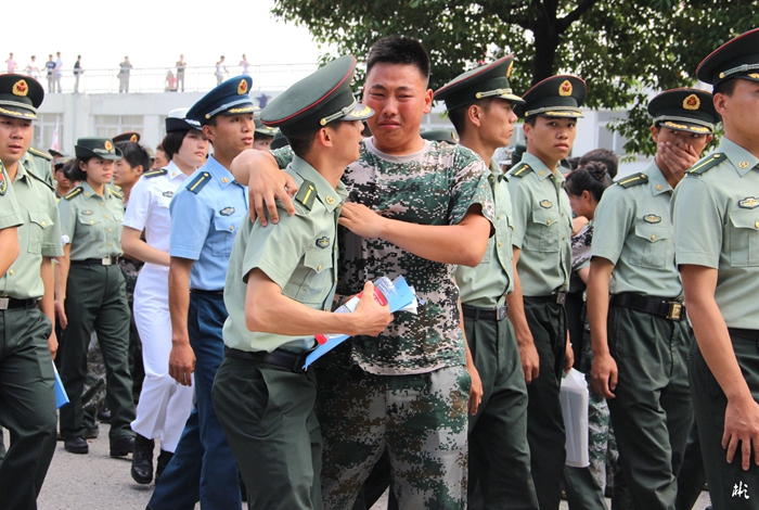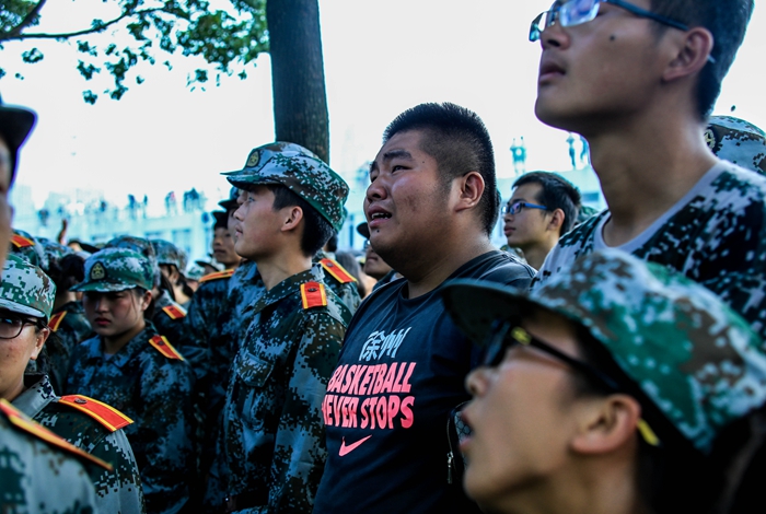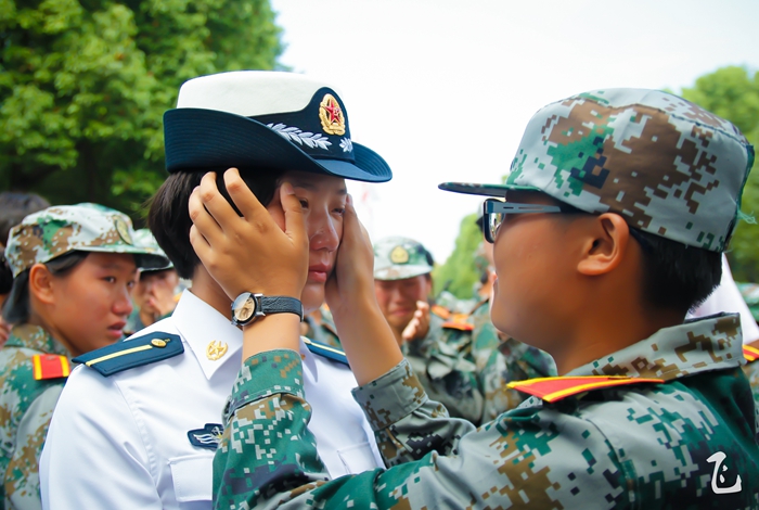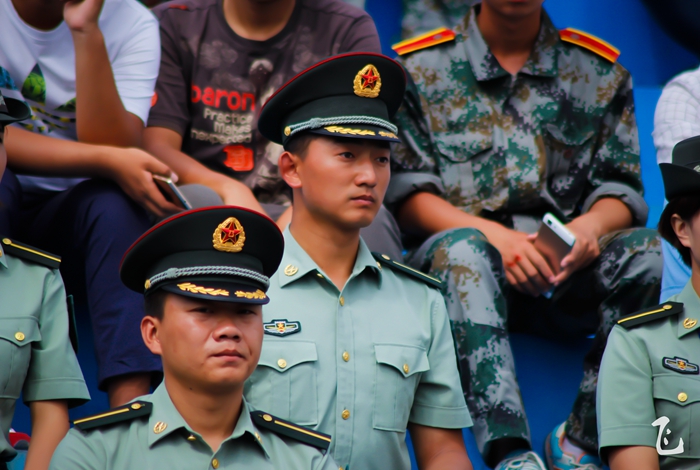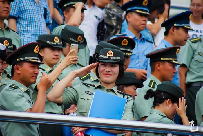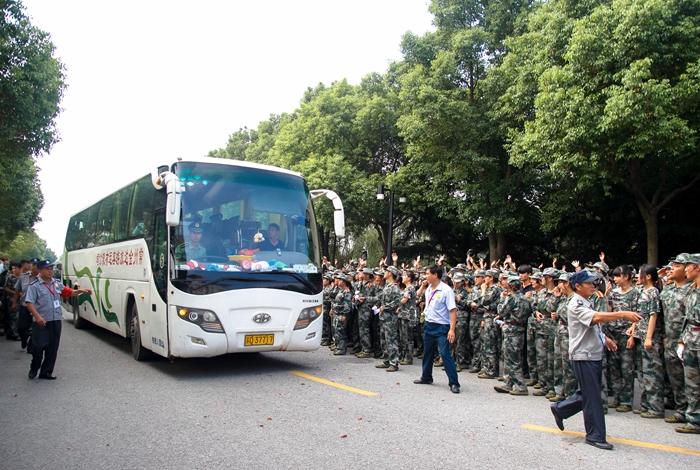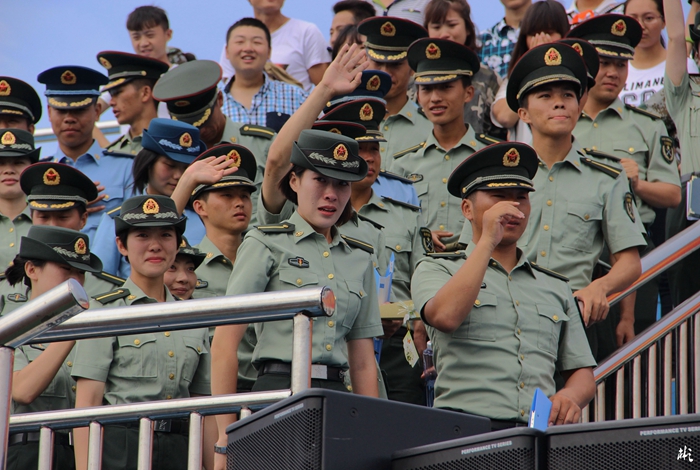 汇报表彰大会一开始,伴随着嘹亮的《分列式进行曲》,26个学员方阵依次经过主席台前,学员们稚嫩的脸庞,经过十多天的训练,已然变成了小麦色甚至是黑麦色,在朝阳的照耀下,显得神采奕奕。在那或宏量或清脆的“敬礼”声之后,他们变齐步为正步,铿铿锵锵地经过观礼台,台上的领导们纷纷站起身来,向他们挥手致意。