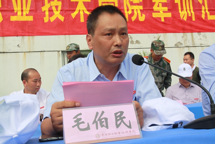 最后,学院副院长毛伯民发表军训总结讲话,他代表学院充分肯定了承训部队教官良好的军事素质和过硬的作风,对全体教官严格要求、认真施训表示了衷心的感谢。同时他希望同学们把军训中养成的良好作风带到今后的学习和工作中去,努力奋斗,不断进取。