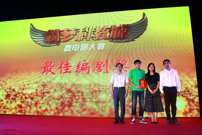 大赛设最佳摄影、最佳编剧、最佳人气、最佳男演员、最佳女演员、最佳导演、最佳影片和优秀组织八个奖项,共有29部微电影作品报名参加了比赛。最终,我院参赛作品一举囊括三个大奖,其中《少年梦 水果情》荣获最佳影片奖、《追梦时代》荣获最佳编剧奖、《轻院苹果秀》荣获最佳人气奖,成为当晚名副其实的最大赢家。