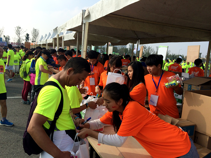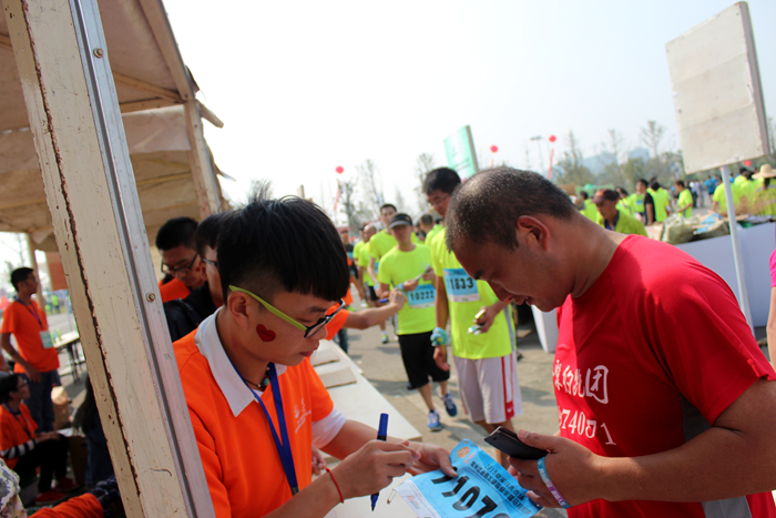6点整,车辆到达比赛场地,志愿者们按之前一天踩点路线分批前往各自服务地点,准时上岗,开始了繁忙的工作。衣物存放区志愿者热情接待每一位寄存包裹的选手,并按规定放置方法看管和存取;负责赛场引导的同学们一遍又一遍不厌其烦地解答选手及其家属各种各样的问题;赛道助威志愿者为每一位参赛选手呐喊、助威,丝毫不保留一点气力;在收容车上服务的同学协助裁判员,将体力不支、中途退赛的选手收容上车;赛后补给和奖牌发放区的志愿者在比赛开始前为选手们发放人体彩绘贴纸,后期为他们提供矿泉水及相关补给品,按规定发放不同类型的奖牌,5个多小时的服务时间里几乎没有坐下休息过,但同学们依然兢兢业业,丝毫没有怨言。整个志愿服务过程中,同学们都始终保持着饱满的精神状态,认真严谨,守时爱岗,团结合作,身体力行地践行“爱岗敬业,自强不息”的建军精神,积极践行和传播社会主义核心价值观,受到了团市委、武进团区委以及参赛选手们的高度肯定。志愿者们用他们的热情和坚持,成功完成了属于他们的“马拉松”。
