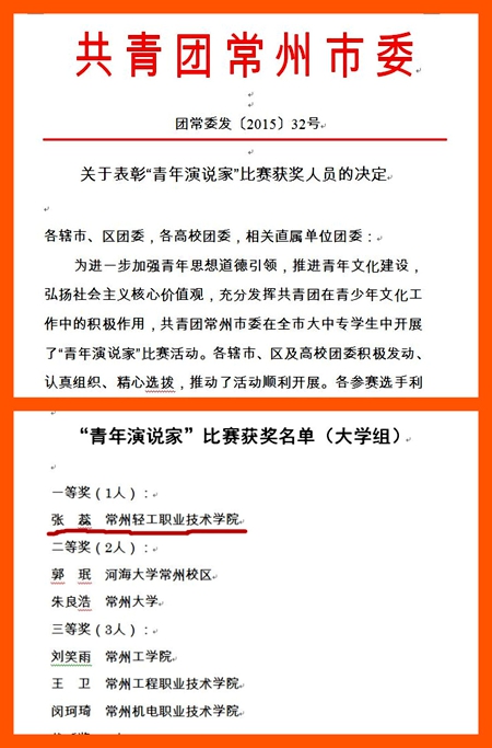 “青年演说家”比赛常州站刚刚落幕,江苏省“青年演说家”比赛就吹响了集结号,张蕊同学将代表常州市出战,与江苏省各大高校的演讲高手们切磋较量,让我们一起为他加油!