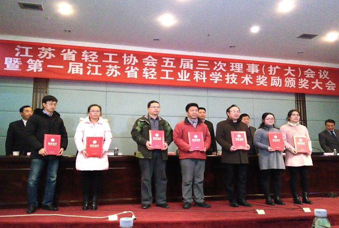 会议对2015年度江苏省轻工业科学技术奖进行了表彰与奖励。我院获首批江苏省轻工协会“创新创业实践基地”荣誉称号。