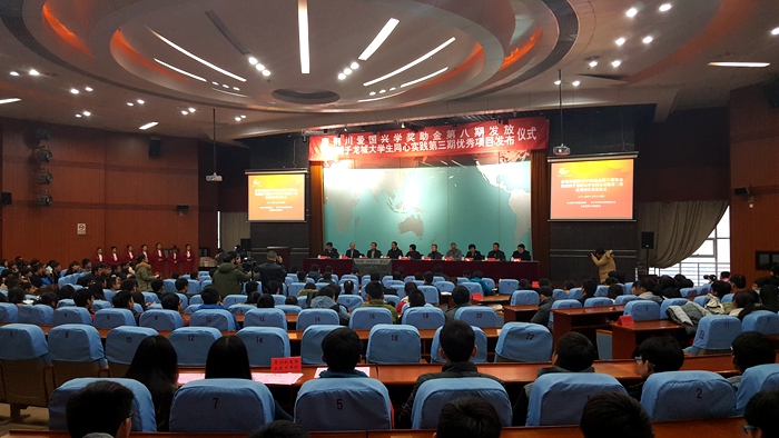 12月24日,常州市唐荆川爱国兴学奖助金第八期发放仪式在科教城举行。市委常委、市委统战部部长张跃等市领导和唐建年、唐松年等数名毗陵唐氏后裔出席了本次活动,我院学工处处长柏铁山、团委副书记季华、相关教师、9名2015年“唐荆川爱国兴学奖助金”获得者以及20名学生代表参加了仪式。