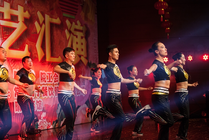 晚会伊始,副院长毛伯民向全体师生作了热情洋溢的新年致词,他满怀深情地回顾了我院在2015年取得的主要成绩,对全体师生致以新年的祝福,并祝愿晚会圆满成功。院爱乐社师生合奏了开场序曲《喜洋洋》和《彩云追月》拉开了晚会的序幕;大合唱《在太行山上》、《强军战歌》慷慨激昂,歌曲《红豆》、《南山南》一曲柔美、一曲婉转,充分表现了老师们浑厚的演唱功底;现代舞《BANG BANG BANG》、《舞动青春》以轻松欢快的乐曲,释放着无限青春与激情,把晚会的气氛调动了起来;魔术《闪现》使观众体会到变化莫测;手语操《天亮了》表达了父母为了孩子奋不顾身牺牲了自己以及被救的孩子对父母的思念之情;古典舞《英台梳妆》以轻盈的舞姿、娴熟的步调再现了古典舞特有的魅力,给晚会增添了一抹炫丽的色彩;歌曲串烧《我想大声告诉你》、《清明上河图》、《男人好难》曲风多变,衔接到位;肚皮舞《男孩女孩》带给我们异域的风情;院工会的多位老师为观众带来了健康活力的健美操;最后,晚会在艺术中心杨滢老师的一首《眷恋》的歌声中圆满落幕。