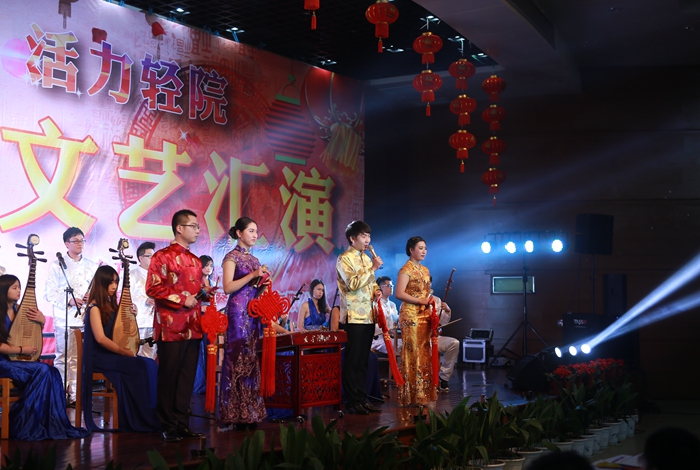 羊歌盛世方报捷,猴舞新春又呈祥。12月30日晚,我院“筑梦青春活力轻院----2016年元旦晚会”在图文楼千人报告厅隆重举行。学院党委书记杨兴华、院长周大农、副书记张涛、副院长杨劲松、副院长蒋新萍、副院长毛伯民及各部门领导与千余名师生欢聚一堂,共同观看了这场青春盛宴。