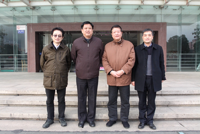 党委书记杨兴华与前后三任院长合影(左起:周大农、杨兴华、王荣成、杨劲松)