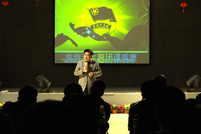 4月6日,我院组织开展了“聚我奉献心 腾飞中国梦”主题团课观摩展活动。本次活动由旅游系分团委承办。学院党委书记杨兴华、副院长毛伯民、院团委书记季华、旅游系党总支书记高振发、副书记邢凯岭、院团委副书记汪洋以及各系部分团委书记莅临现场并观摩了整场主题团课。