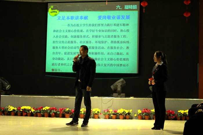 最后,院党委杨兴华书记作总结讲话,希望大家将奉献与中国梦建设相结合,发扬“工匠精神”,做到精益求精、处处留心,从基础做起,树立正确的三观,培养自己一技之长,为创建中国梦而努力。