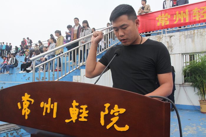 在庄严的升旗仪式后,副院长王志平致开幕词。王院长代表学院党委、行政向运动会的召开表示热烈祝贺,向为筹备本次运动会付出辛勤劳动的老师和同学表示衷心的感谢,向参加本次运动会的全体运动员、裁判员表示诚挚的问候,同时预祝大会取得圆满成功。随后,裁判员许鹏峰老师代表全体裁判员宣誓,表示裁判员将严格执行竞赛规程与竞赛规则,团结协作,公平公正。运动员张灿代表全体运动员宣誓,表达了尊敬对手、尊重观众、服从裁判、勇于拼搏、赛出水平的决心与信心。