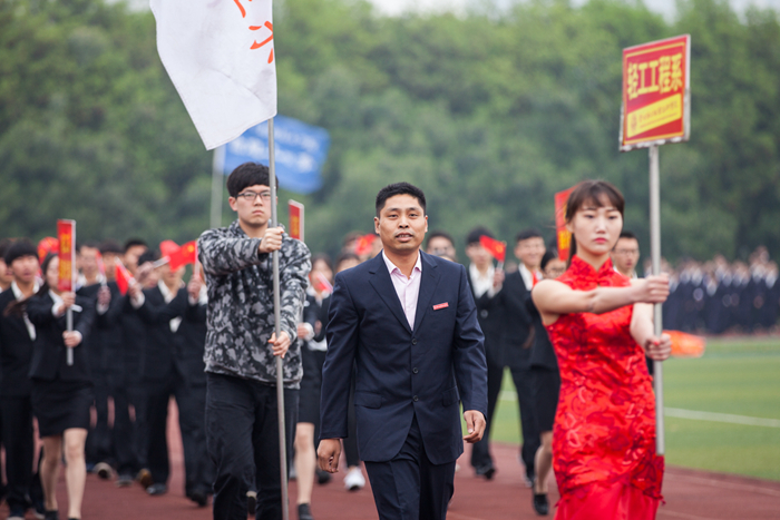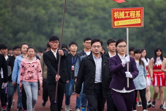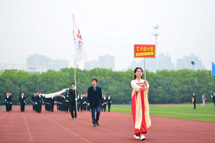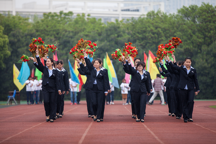 伴随着雄劲激昂的《运动员进行曲》,国旗队、院旗队、鲜花队、彩旗队以及我院八个系方阵代表队身着统一的服装、迈着矫健的步伐、喊着响亮的口号,依次走过主席台接受检阅,展现出轻院学子们蓬勃向上的精神面貌,赢得现场观众们的阵阵喝彩。