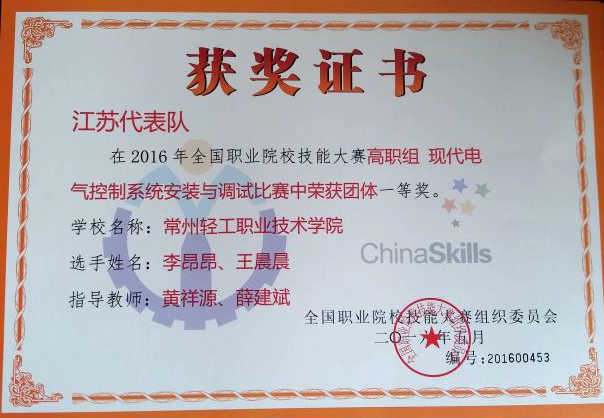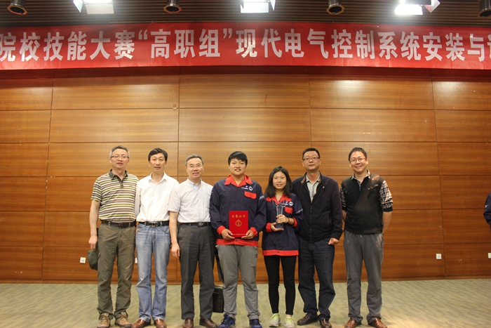 本次比赛在天津中德应用技术大学举行,以“弘扬工匠精神,打造技能强国”为宗旨,全国各院校共71支队伍参赛,经过为期2天紧张、激烈、有序的竞技,全面考核了选手综合应用PLC、变频、伺服、步进、触摸屏等现代控制主流核心技术的能力,也反映了职业院校培养电气类复合型专业技术技能人才的水平。我院选手王晨晨、李昂昂充分发挥了水平,脱颖而出,他们在薛建斌、黄祥源的两位老师指导下,经过刻苦训练,获得国赛一等奖。这是电子系在推进“构建竞赛文化,促进高职学生实践创新能力培养”专业文化建设过程中取得的又一硕果。