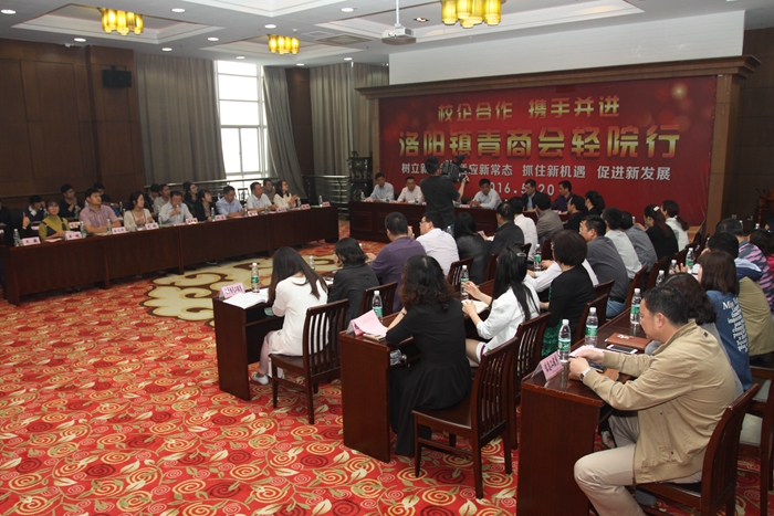会上,杨劲松院长首先代表学院对洛阳镇政府及商会代表光临我院表示诚挚地欢迎。希望通过这次活动搭建起学院与洛阳镇各企业之间的合作桥梁,进一步密切关系、畅通渠道、挖掘潜力,积极发挥校企合作的优势。学院科技处袁锋处长和洛阳镇青商会蒋健会长分别介绍了学院的产学研情况和青商会情况。