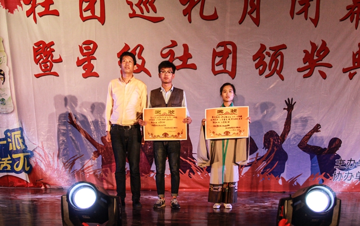 此外,根据近两个学期的社团日常考核和微信公众平台投票综合评选出的星级社团,也在此次晚会上进行了表彰。最终,艺术设计系子衿汉服社和电子系流光印记拍客俱乐部获得了五星级社团的荣誉。