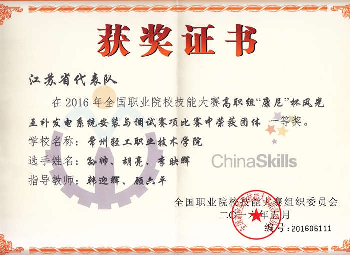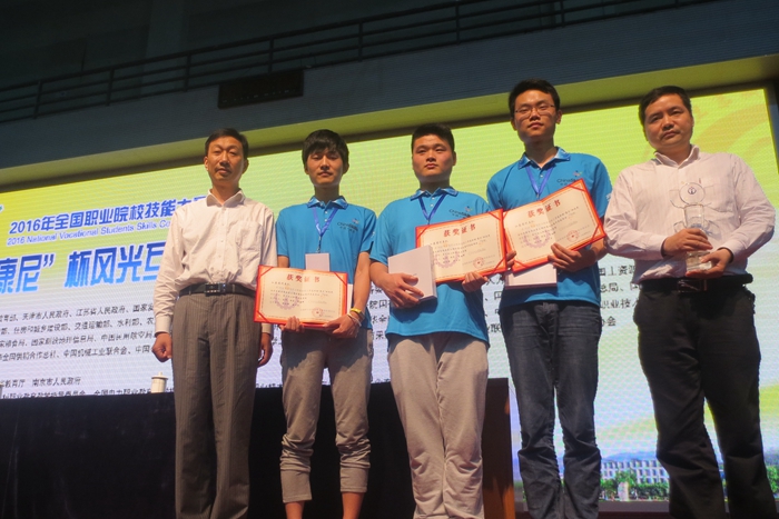 本次赛事由教育部、国家发改委、科技部、工信部、江苏省人民政府等37个部委主办,江苏省教育厅承办,共有来自全国的51支省赛出线团队参加,参赛队均是全国各省的佼佼者,竞争异常激烈。我院代表队由电子电气工程系孙帅、胡亮、李映辉三位学生组成,在教练韩迎辉、顾六平的指导带领下,赛前不畏辛苦,加班加点,勤学苦练,在汗水的浇灌之下,打下了坚实的基础;比赛期间,选手们在强手如林的赛场沉着冷静、紧密协作、顽强拼搏,赛出了水平,终于取得了来之不易的国赛金牌,充分展示了常州轻院莘莘学子与教师娴熟的专业技能实力和水平以及奋发向上的精神风貌。