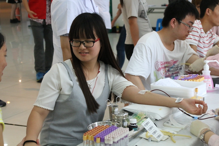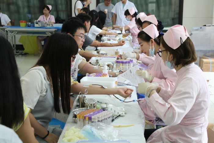 六月炎热的天气,依旧挡不住同学们献血的热情,