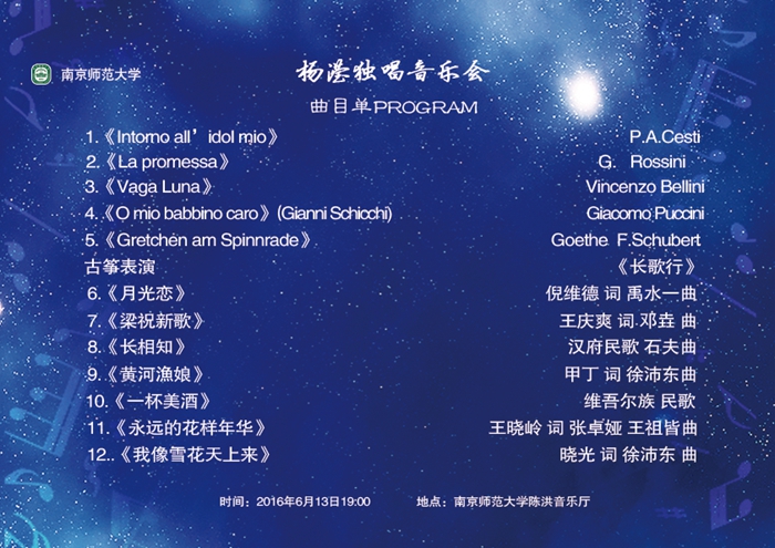 我院注重培养文化艺术氛围,采取多种手段,努力推动校园文化建设,坚持“请进来,走出去”。杨滢独唱音乐会的举行,为我院与南京师范大学的艺术交流提供了一次极好的机会。