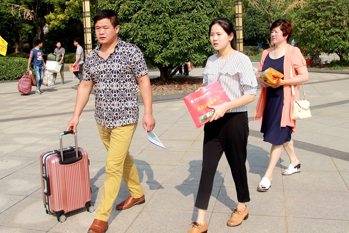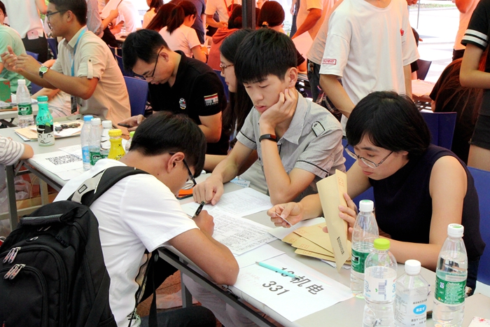 每年新生报到时,志愿者就成了校园中最为靓丽的风景线,今年的志愿者也不例外。学院新生报到注册点分布于图文楼北广场,11日下午,各种帐篷物资就已经在校内外各个迎新点准备就绪。12日凌晨,迎新工作紧锣密鼓地启动:在常州火车站、汽车站,志愿者们引导着新生登上学校的迎新专车,在车上给新生们讲解学院概况、常州的历史人文;在校内,学院南大门、西大门、北大门门口均有各系引导组的志愿者前来引导,他们统一着装、面带微笑,忙碌地为新生搬运行李,协助新生办理各种入学手续。志愿者们热心帮助,耐心解答,细致周到的服务,为远道而来的新生和家长做好了后勤服务,让新生及家长感受到了轻院这个大家庭的温暖。