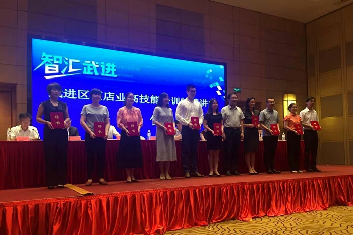 启动仪式上,我院周丽、俞亚珍等十位教师被武进区人力资源和社会保障局聘为武进区酒店业高技能人才培训特聘讲师。启动仪式后,旅游系许艳老师为武进假日酒店员工开展了题为《酒店业员工服务意识的自我认知与培养》的专题讲座。