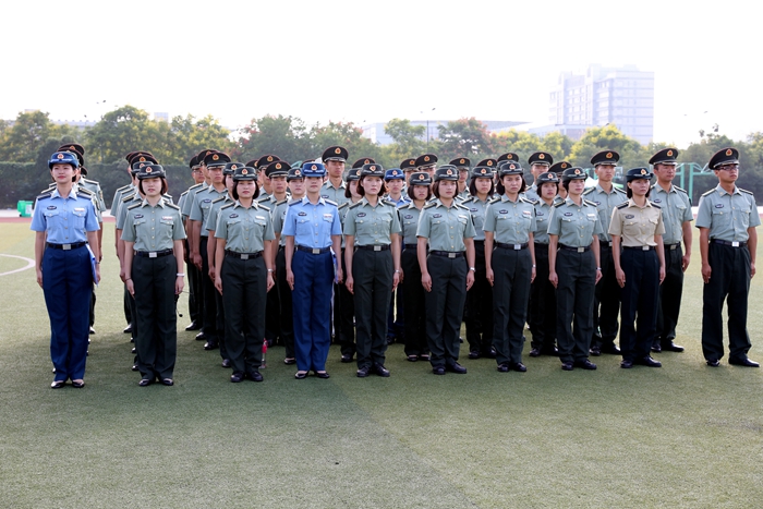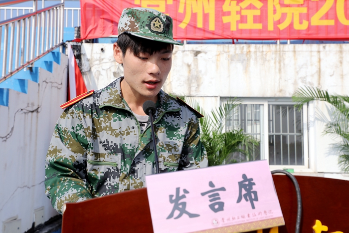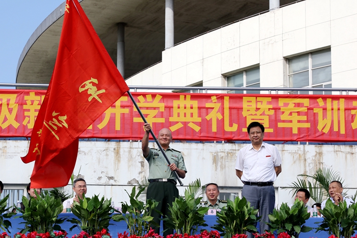 会上,院党委书记杨兴华同志授军训团团旗,中国人民解放军理工大学李红军上校接旗。随后,易强大校作军训动员讲话,他希望同学们发扬艰苦奋斗的精神,以饱满的热情和昂扬的斗志投入训练;学习军人的优良传统和作风,以高质量的技术动作展现学子风采;保持高度的集体主义观念和组织纪律观念,保持高涨的情绪、昂扬的斗志、团结的氛围、乐观的精神,争夺集体荣誉。