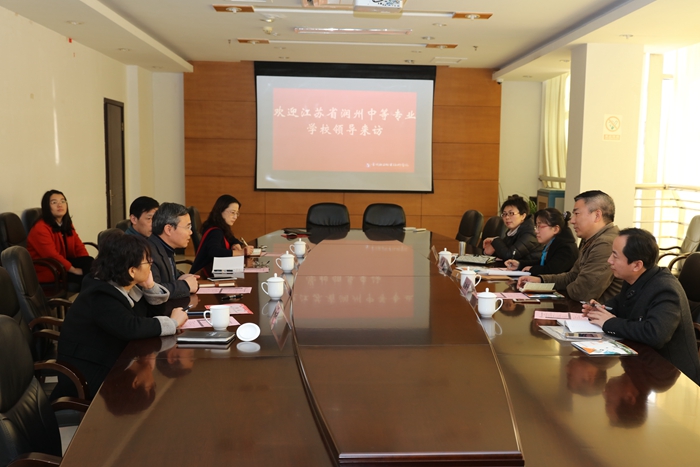 交流会上,张涛副书记对江苏省润州中等专业学校一行的来访表示热烈的欢迎,并介绍我院的基本情况和人才培养模式。双方共同观看了我院宣传片。江苏省润州中等专业学校副校长高新斤感谢我院的热情接待,并对我院“双证融通、产学合作”人才培养模式及中高职分段培养项目给予了高度评价。随后,双方就14级3+3班级第六学期顶岗实习事宜,省现代职业教育体系建设试点项目进行了深入交流和探讨。最后,张涛副书记总结发言。他指出,双方通过激烈、高效地深入交流碰撞出了计算机应用专业中高职分段培养的火花,希望两校建立长期合作项目,共同为社会培养实用性技能人才。
