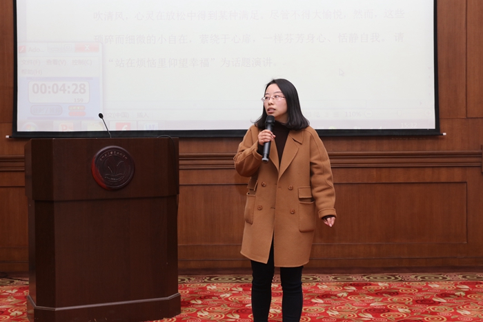 第二阶段比赛从辅导员综合素质和应变能力入手,采用现场抽签和抽题的方式进行,内容包括主题演讲、案例分析及谈心谈话等三个项目。案例分析环节全面考察了辅导员分析问题、研判问题、解决问题的能力,内容涉及由学生奖助学金评选、成绩波动、宿舍矛盾、情感问题等引起的心理、学习、就业、交往等方面的困惑。在主题演讲环节中,辅导员以“站在烦恼里仰望幸福”、“预知明天,把握今天”等为主题,全面展示了良好的专业素养和精神风貌,字里行间传达着对学生真挚情感,对自身角色的认同与热爱。谈心谈话环节采取情景再现的形式,辅导员与学生进行深入交流,谈话涉及爱国主义教育、人际关系、助学金的支配、违纪处分等。针对学生面临的各种问题,辅导员认真聆听、循循善诱、全面分析、合理引导,充分体现了对学生成长成才规律较强的把握和教育引导能力。