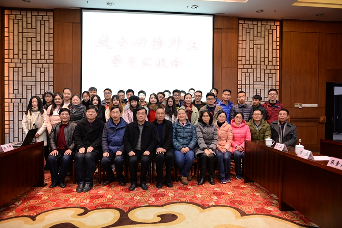 1月10上午,学院召开了赴台师生学习汇报会。院长杨劲松,副院长毛伯民、姚庆文,教务处、学工处等部门领导及赴台研修的32名师生参加了此次汇报会。会议由港澳台事务处处长胡兴国主持。