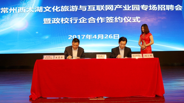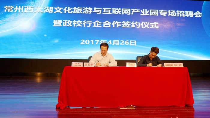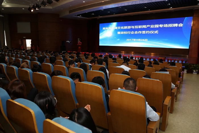 本次招聘会分为主会场和分会场,主会场设在我院招聘大厅,招聘企业现场答疑、面试、招聘学生,共有800余名学生进行现场招聘;分会场设在我院千人报告厅,西太湖产业园区各企业进行企业宣讲。共有1000余名大一、大二学生现场听取企业宣讲,共同领略西太湖的魅力。会上,我院副院长王志平致欢迎辞,常州西太湖文化旅游产业园、西太湖互联网产业园主任刘立鸿为大家介绍了西太湖科技产业园概况和苏澳合作园区概况。随后,我院副院长王志平与西太湖互联网产业管理办公室、西太湖文化旅游产业管理办公室主任刘立鸿签订政校行企合作计划书,我院校企合作部主任高振发与江苏灵犀信息科技有限公司代表杨洋签订校企合作计划书,开启了充分融合政校行企资源,实现校区与园区、专业与产业、教学过程与生产过程对接,解决园区企业员工和社会人员的岗前培训、技能提升、职业技能鉴定、成人学历/非学历教育等培训,共同为现代服务业发展培养创新应用型人才的新模式。