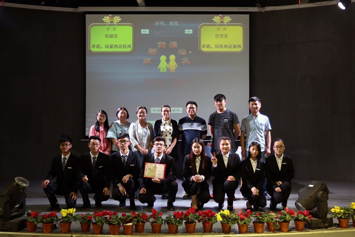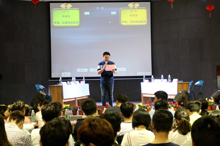 来自各系共八支代表队参加了辩论赛,他们积极参与,充分准备,为大家奉献了一场又一场精彩绝伦的比赛。经过初赛、复赛的激烈角逐,最终,机械工程系代表队和经管系代表队进入总决赛进行巅峰对决。比赛开始前,崔晓曙副书记致辞,崔副书记就“建军杯”辩论赛的意义与取得的成效做总结,并预祝比赛圆满成功。随后比赛正式开始,双方围绕“孝道,以家风定社风/社风定家风”这一辩题展开辩论。在历时一个多小时的激辩交锋中,双方辩手围绕着本方观点,拿出古今中外的典型例子,在申明自己立场的同时,也频频发问把对方的观点推倒。在观众提问阶段,有些观众也颇具辩手风范,提出的问题涉及各个方面,相当具有典型性和针对性。