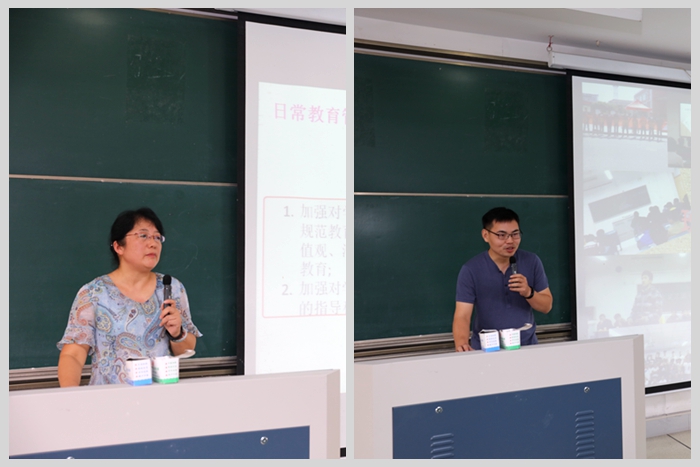 培训会上,学院优秀班主任经贸管理系侯志燕、电子电气工程系王风圳老师就班主任工作进行经验交流。