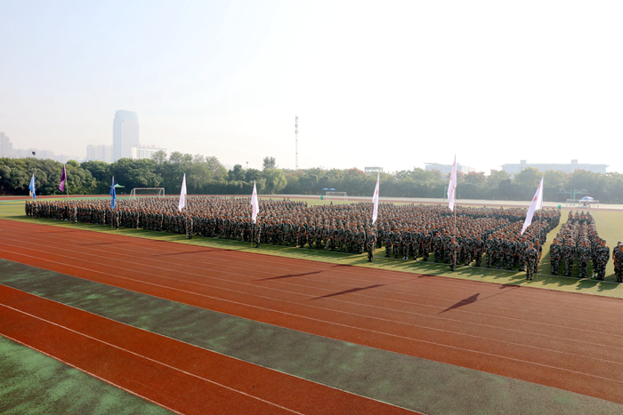伴随着激扬的运动员进行曲,全体新同学投身到紧张又充实的军训生活。