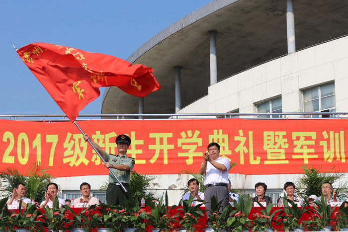 9月18日上午,学院2017级新生开学典礼暨军训动员大会在操场隆重举行。学院党委书记缪昌武、院长杨劲松、纪委书记壮国桢、副院长蒋新萍、姚庆文及学院职能部门负责人和各系书记、主任,全体教官,2017级新生及班主任出席了大会。大会由党委副书记毛伯民主持。