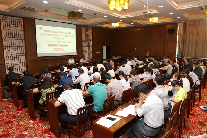 为深入推进全面从严治党和“两学一做”学习教育常态化制度化,9月21日,学院党委书记缪昌武同志为全体中层党员干部、支部书记、辅导员讲授“旗帜鲜明讲政治,凝心聚力谋发展,为建设特色鲜明的高水平高职院校提供坚强政治保证”的专题党课。院党委副书记毛伯民主持专题党课。