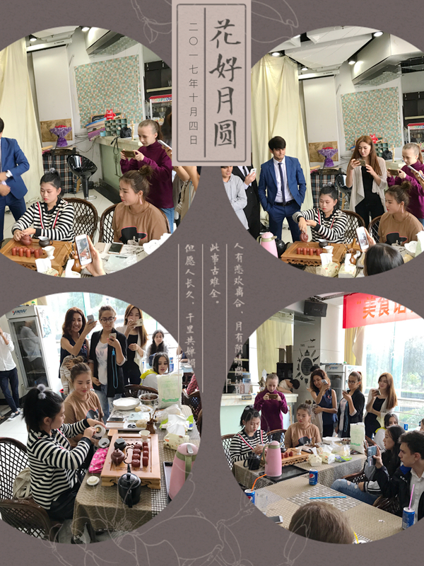 我院学生通过茶艺表演、赏月制作月饼、舞蹈表演等各种形式让留学生们感受到节日的喜庆和浓厚的中华传统文化氛围。活动在一片欢笑声中开始,留学生纷纷体验了泡茶、制作月饼等活动,并掏出手机和远在他乡的父母分享交流。