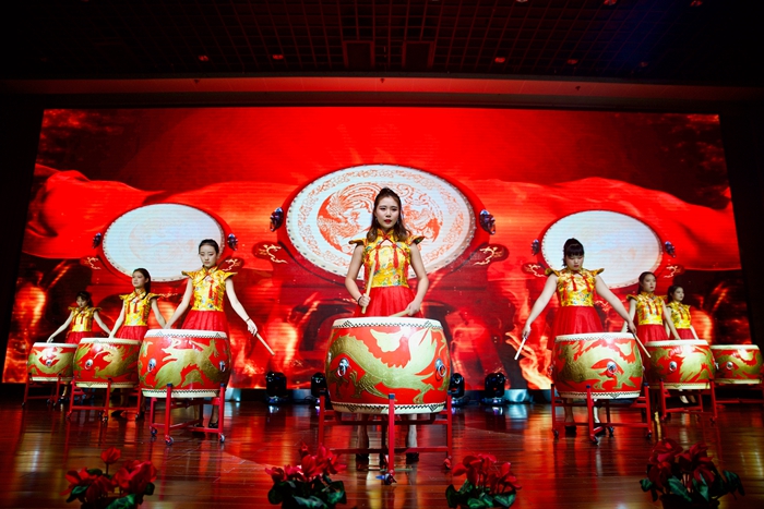 在爱乐社鼓乐队一首劲爆的民族风打击乐中,晚会拉开了帷幕。接着,院党委副书记毛伯民上台致辞,他对新生的到来表示欢迎,热情洋溢的语言和激情澎湃的气势感动了在场的新同学。