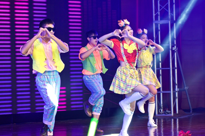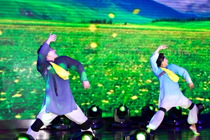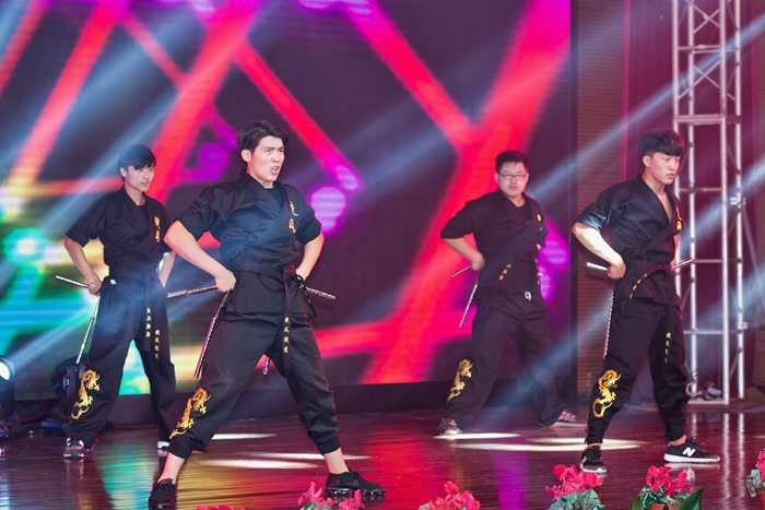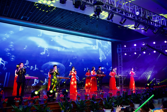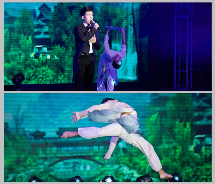 歌伴舞《为了谁》感人肺腑的旋律让人们体会到人民子弟兵一心想着人民,英勇顽强、奋不顾身的崇高品质,激发我们热爱解放军、热爱祖国的情感。《望乡词》是著名爱国诗人于右任眷恋大陆家乡所写的哀歌,抒发了对大陆、对故乡深切的向往和眷恋,怀乡思国之情溢于言表。《律动青春》展示了学生动感的青春与奔放的活力,彰显着年轻人应有的朝气和活力。《双节棍》的表演快、准、狠, 让观众的心跟着刚中带柔,柔中带刚的双节棍舞动起来。民乐合奏的一首流传在新疆吐鲁番市的《阿拉木汗》,旋律具有歌唱性,节奏富于舞蹈性,频繁地运用切分节奏,使乐曲轻快活泼的效果更加突出,再结合手鼓的伴奏,使人听之欲舞。今年我院出现了七十多张来自“一带一路”国家留学生的面孔,她们带来了充满异域风情的民族舞蹈和充满激情的独唱《Shine like a diamond》,把晚会的气氛推向了新的高潮,观众一起挥动手中的荧光棒,歌声、掌声、喝彩声汇聚成一片欢乐的海洋。本次晚会还邀请了常州恐龙园艺术团,他们带来的充满现代气息的舞蹈《恐龙潮玩趴》,营造了欢乐的节日氛围。学院十佳歌手带来的歌曲串烧点燃了现场气氛,台下观众热情的欢呼声响彻了整个演出会场。双人舞《出走》融合了蒙古族传统舞蹈语汇和现代舞相,主要表现了兄弟两人外出闯荡,离别故乡和亲人时内心的激烈挣扎。他们俩用真挚的感情,娴熟的技巧,舒展的舞姿,带给观众一次次情感的撞击。最后由4名师生带来重唱轻院版《成都》,整个场景以校园美景、生活为素材轻院版《成都》,引发了在场所有观众的青春憧憬和美好回忆。在青春靓丽的歌声中晚会落下帷幕。
