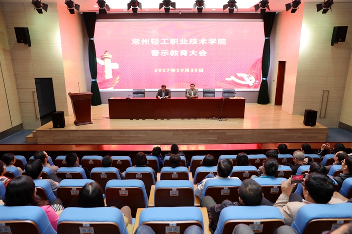 为深入学习贯彻党的十九大精神、落实全面从严治党主体责任、深入推进党风廉政建设、着力营造风清气正的教书育人环境,10月25日,学院纪委组织中层及以上干部、涉及“人、财、物”等重点领域和关键环节的有关人员80多人前往常州市预防职务犯罪教育基地开展警示教育活动。