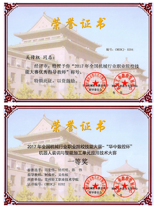10月25日,为期3天的2017年全国机械行业职业院校“华中数控杯”机器人装调与智能加工单元应用技能大赛在宁夏职业技术学院落下帷幕,我院电子电气工程系和机械工程系师生再次联合组队,从全国29所中高职院校的30支参赛队伍、120多名师生中脱颖而出,勇夺一等奖。