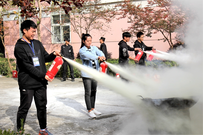 随后,蒋耀华老师向学生示范灭火器的使用方法,并教会学生正确使用灭火器,让学生亲手灭火,在操作中掌握灭火技巧。