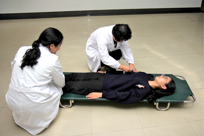 接着,消防演练正式开始。整个演练分为报警求助、疏散逃生、抢救伤员、搭救受困人员四个阶段。听到警报声后,指导老师立即到达指定岗位,指导楼道内学生快速疏散,学生弯着腰、猫着步,用手帕、毛巾等捂住口鼻,沿着指定的疏散通道快速前进,有序撤离到指定的安全地带,随即清点人数,并向上汇报,整个逃生过程迅速而有序。