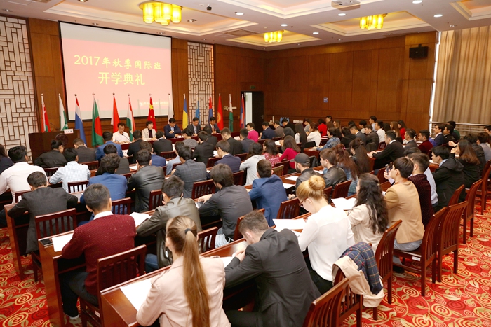 11月10日上午,我院举行2017年秋季留学生开学典礼。学院党委书记缪昌武、院长杨劲松、副院长蒋新萍、姚庆文以及留学生工作领导小组成员和来自十三个国家的67名秋季留学生新生参加了此次开学典礼。典礼由姚庆文主持。