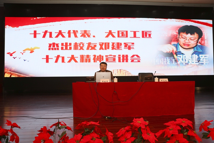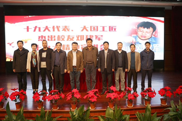 11月15日下午,党的十七大、十八大、十九大代表、杰出校友邓建军回母校宣讲党的十九大精神以及他对“工匠精神”“劳模精神”的独特理解。