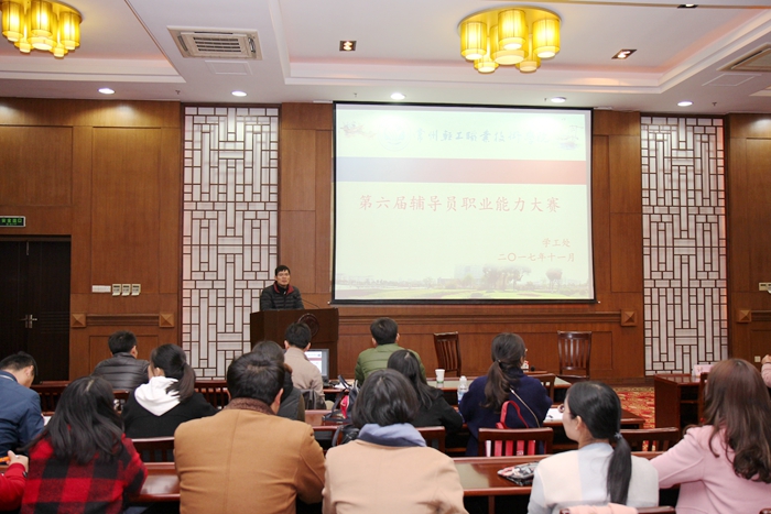 11月30日晚,我院第六届辅导员职业能力大赛隆重举行。学院宣传部长张燏、工会副主席管卫中、保卫处副处长季华担任本次大赛的评委。学工处长柏铁山、各系副书记以及全体辅导员观摩了参赛选手们的精彩展示。