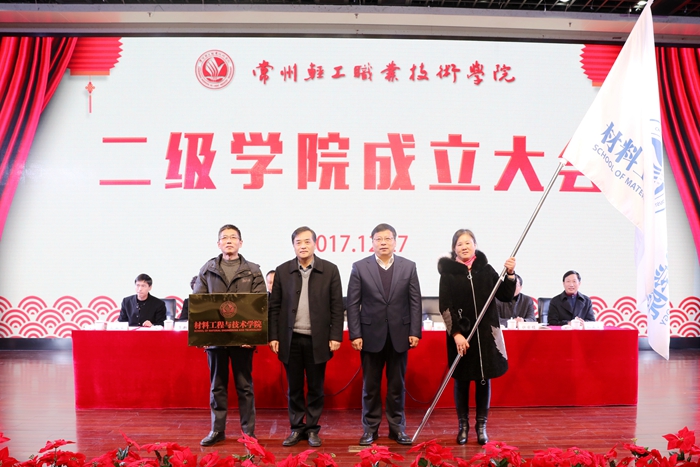 副院长吴丽云宣读了学校成立二级学院的决定以及相关中层领导任命的文件。党委书记缪昌武、院长杨劲松为新成立的二级学院进行了授旗、授牌,标志着我校在继续教育学院、马克思主义学院、海外教育学院后,材料工程与技术学院、机械工程与技术学院、电气工程与技术学院、经贸管理学院、信息工程与技术学院、旅游与烹饪学院、艺术创意学院、轨道交通工程与技术学院八个教学实体二级学院正式成立。