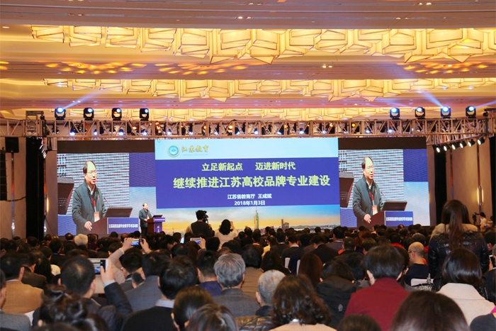 1月3日上午,开幕式在美丽的金鸡湖畔苏州国际会议中心举行。会上,江苏省教育厅副厅长王成斌以《立足新起点,迈进新时代,继续推进品牌专业建设》为题,作主旨演讲。他强调:面对高等教育发展外系统环境发生的巨大而深刻的变化,高等教育的发展要主动适应经济社会转型发展的大趋势,从趋势中找规律、找定位、找问题和解决问题的办法。各高校面对新时代下的新任务,要以习近平新时代中国特色社会主义思想为指引,协调推进学科和专业建设、推进新工科建设、提升工程教育质量和服务能力、加强实践教学促进产教融合,继续推进品牌专业建设。