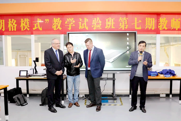 3月28日,学院举行第七期 “胡格模式”教学师资培训班开班仪式。来自德国“胡格模式”教学团队的赛特曼、帕豪、朱佳老师为山东职业学院、黄河水利职业技术学院、常州机电职业技术学院、江苏信息职业技术学院、常州轻工职业技术学院5所国内职业院校共计40余名教师开展胡格教学模式培训。我院杨劲松院长出席了开班仪式。